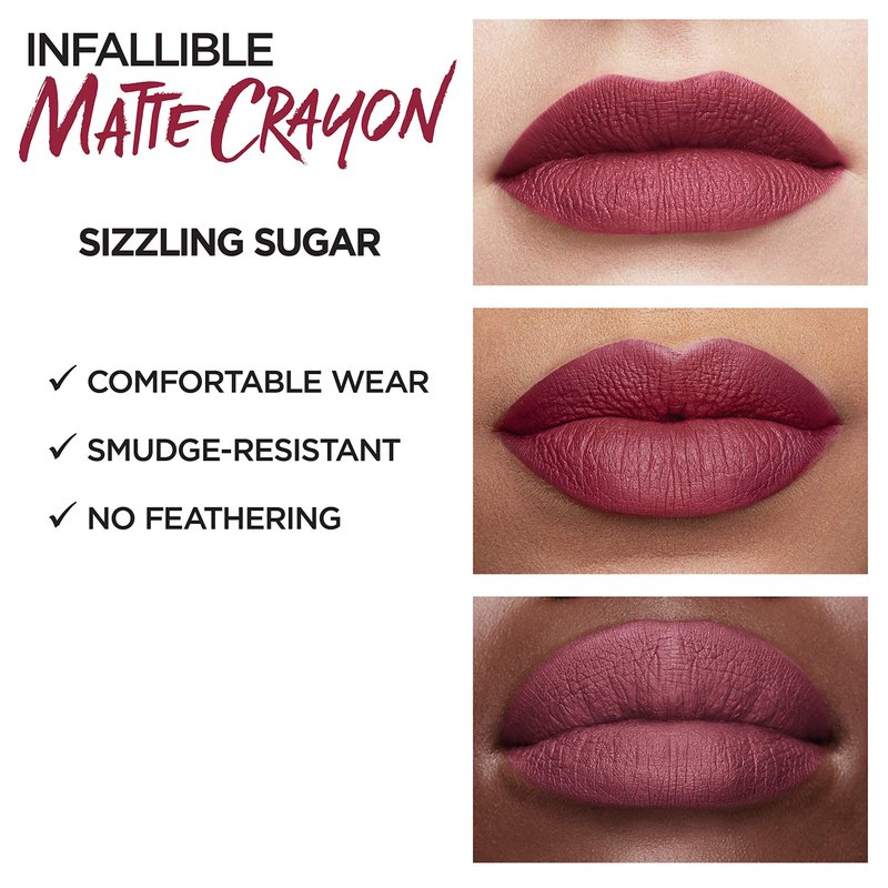 L’Oréal Paris Infallible Matte Lip Crayon, Sizzling Sugar (Packaging May Vary)
