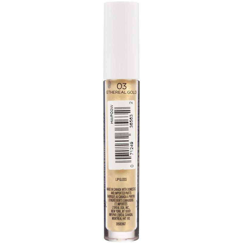 L'Oreal Paris Makeup Infallible Galaxy Lumiere Holographic Lip Gloss, Loaded with Iridescent Pearls, Wear Alone or as a Topper to your Favorite Lipstick, Ethereal Gold, 0.1 fl; oz.