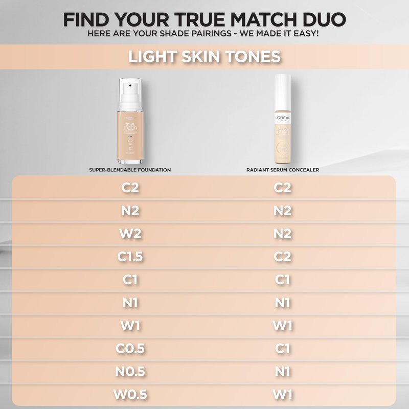 L’Oréal Paris True Match Super-Blendable Foundation, Medium Coverage Liquid Foundation Makeup, C1, Light, 1 Fl Oz
