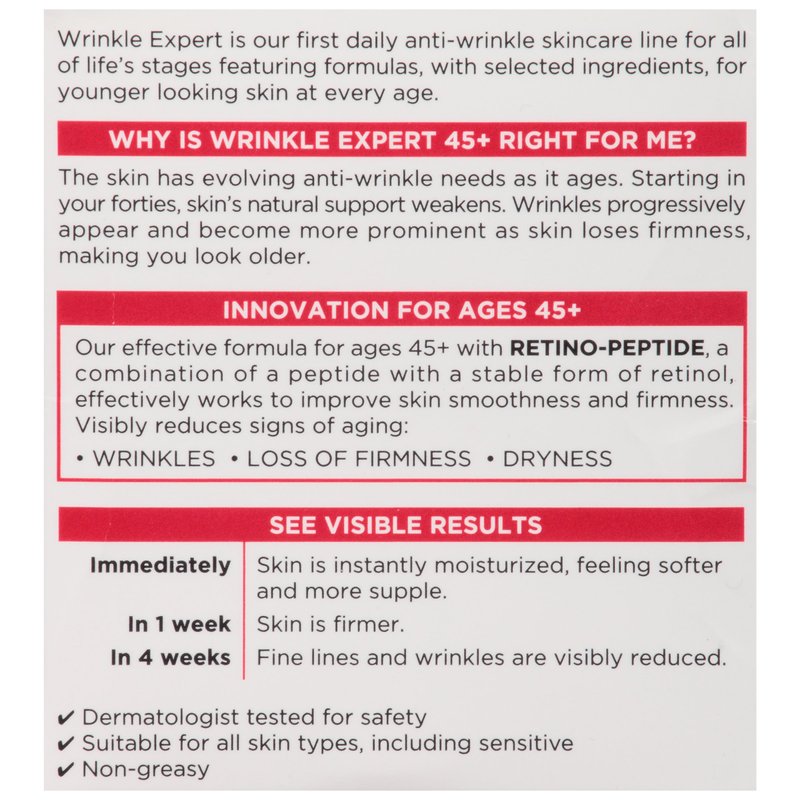 - Wrinkle Expert 45+ is an anti-aging day and night face moisturizer to reduce wrinkles and restore firmness