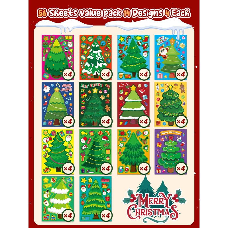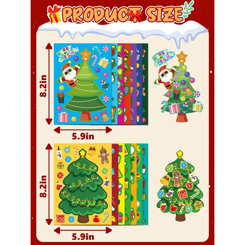 - đ˛ăChristmas Stickers for CraftăIncluding 56 sheets colorful christmas tree stickers with 14 different shapes. The size of each sheets is 8.2''x 5.9''. Including various Christmas trees with different designs, there are enough quantities for you to decorate various holiday items.