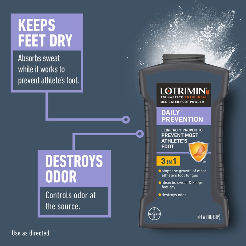 - Keeps feet dry: moisture can promote the growth of fungus, which can cause athlete's foot. Lotrimin Af daily prevention absorbs sweat and keeps feet dry.