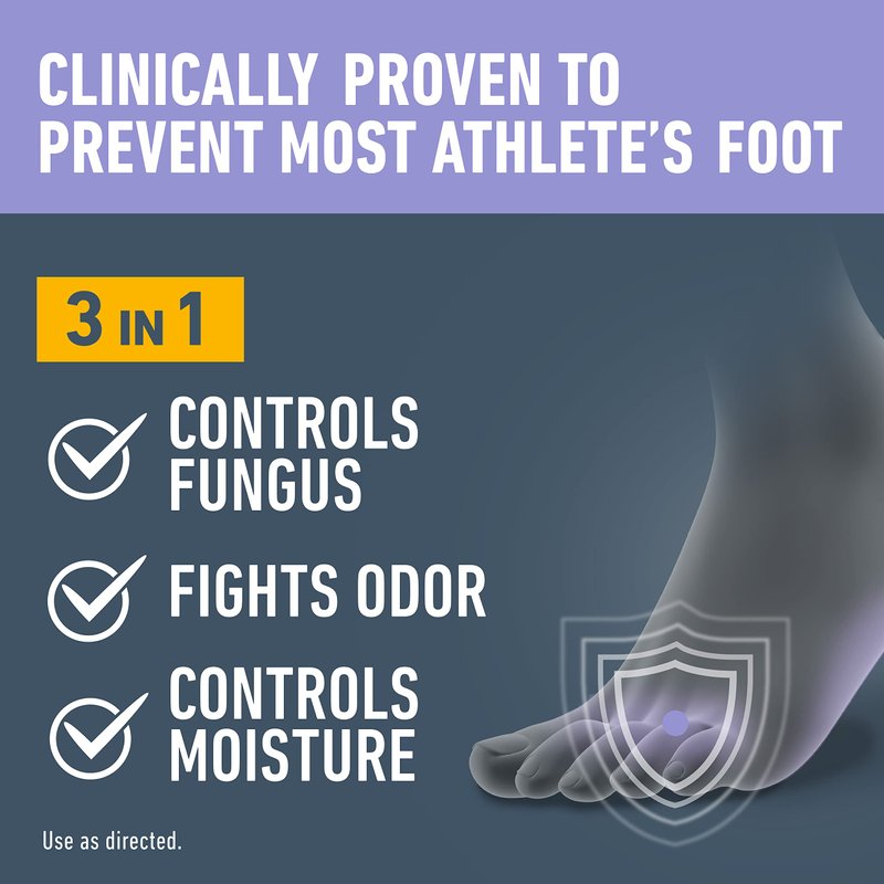 - Contains Tolnaftate: clinically proven to prevent most athlete's foot fungus.