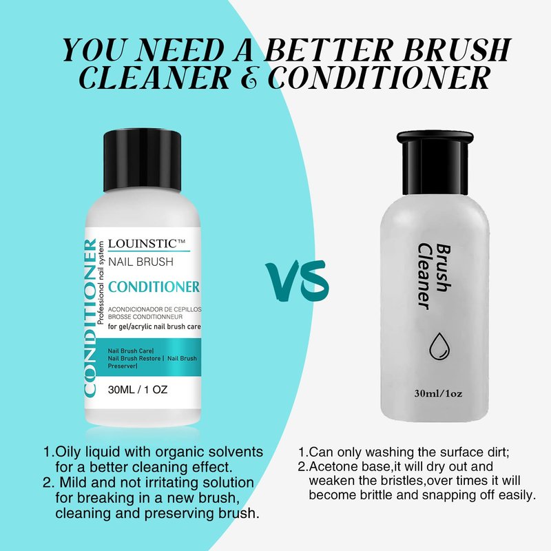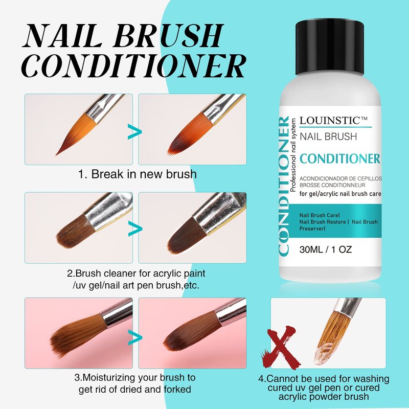 • NAIL BRUSH CLEANER and CONDITIONER: LOUINSTIC brand new brush conditioner is suitable for breaking in a new brush, cleaning and conditioning acrylic paint / uv gel/nail art pen/poly gel nail brushes/ kolinsky acrylic nail brushes. It will keeps brushes longer beautiful and extends the life of your brushes significantly.