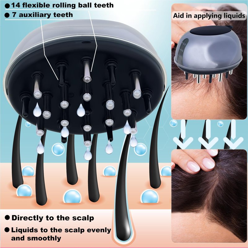 - 【MORE COMFORTABLE】This scalp oil applicator has 14 elastic rolling ball teeth and 7 auxiliary comb teeth, which can massage your scalp while applying the liquid. You will feel more comfortable and relaxed. Pressing the soft cap can speed up the liquid flow.