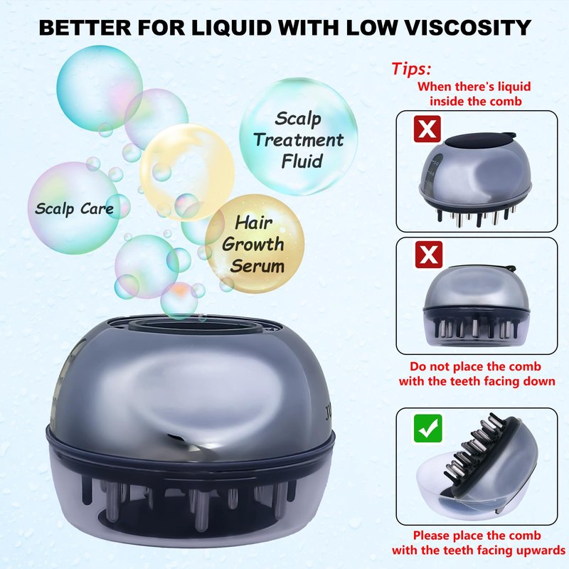 3. Low viscosity liquids compatibility: The scalp oil dispenser works well with low viscosity liquids, such as scalp serums, hair growth serums, nutrient solutions, conditioners and essential oils, etc. Please note that it does not work well with high viscosity liquids.