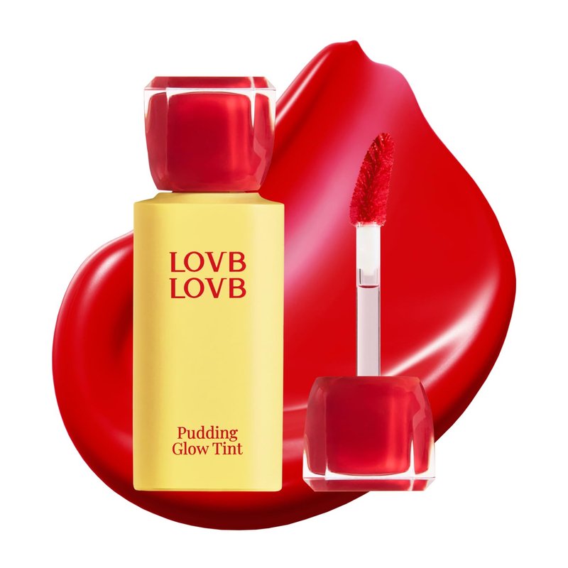 LOVB LOVB Pudding Glow Korean Lip Tint | Long-Lasting Lip Gloss Tint for Glowy | Moisturizing | High Pigmented | Non-Sticky Glossy Lip Stain 0.14 Oz (01 RED BERRY)