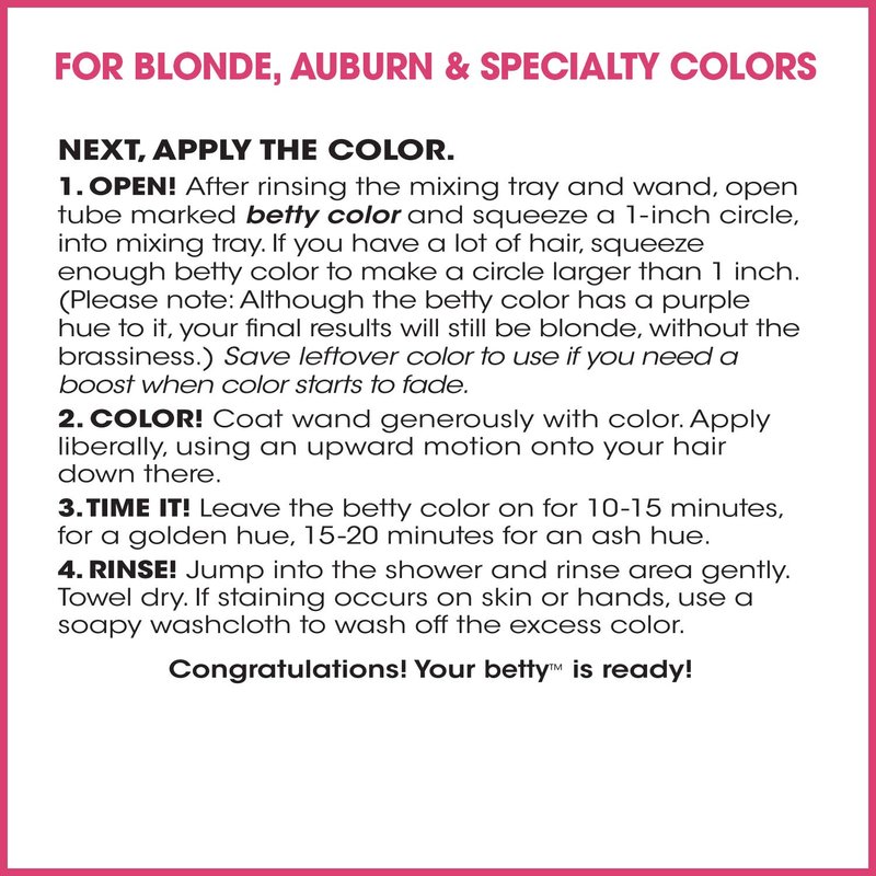 - Multiple applications, Works on all hair types, even the darkest hair will be LOVE betty red!