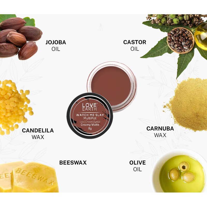 How many of us have been in the middle of something during a working day or as an event and found ourselves looking for makeup that multitasks as we do? A tiny touch-up with our Love Earth multipot will look out for you any time you need that instant gorgeous look! And it comes with a gorgeous chocolate vanilla fragrance. We can literally assure you how much life this Watch me Slay Variant will bring new life into your look for an office presentation or like a dinner date where you can just run to the bathroom for a 5-minute tinkle, without stealing any valuable time. What more could you want? Like this is that one product that is organic and gets you an instant glow. It works both as a makeup and skincare product. And it feels super light and keeps your skin moisturized all day long.