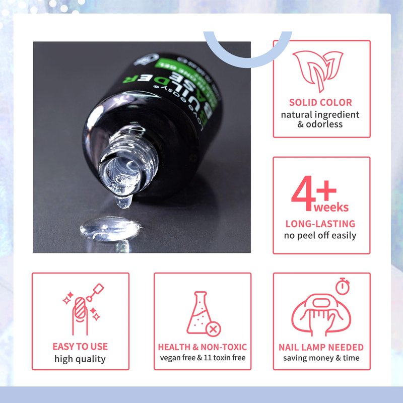 Love easy Hypoallergenic Gel Nail Polish, Hema Free Gel Polish Builder Base Gel 0.5 fl oz- Used as a nail tip adhesive Nail extensions