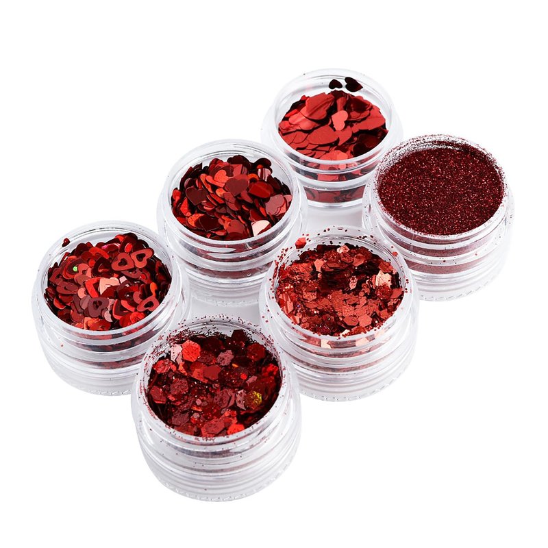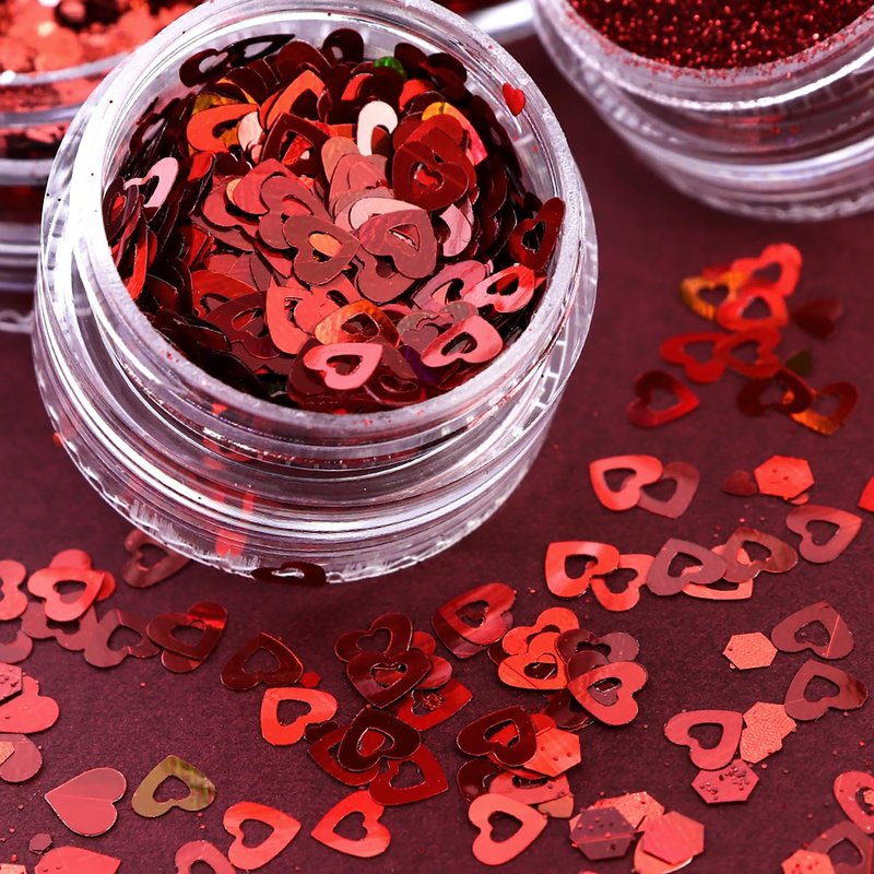 - 💖【Quantity】You will get 6 Jars red nail glitter sequins, packaged in separate grid for easy storage and carrying, glitter love heart sequins and glitter powder are very suitable nail & face decoration,it is let you nail different others, give you full romantic.