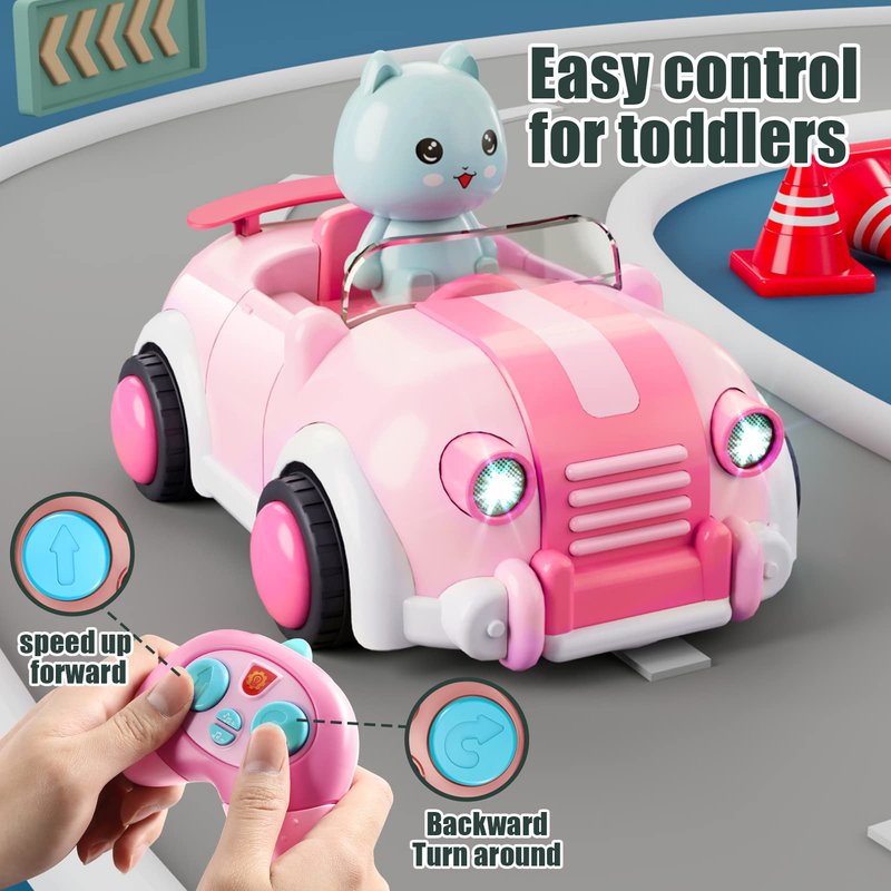 - Perfect Gift:This Remote Control Cartoon Car Set is a perfect birthday, Christmas gifts for your girl. Great for parent-children activity. Also funning toy playing with friends to increase kid’s cooperation ability. Enjoy the fun life together.