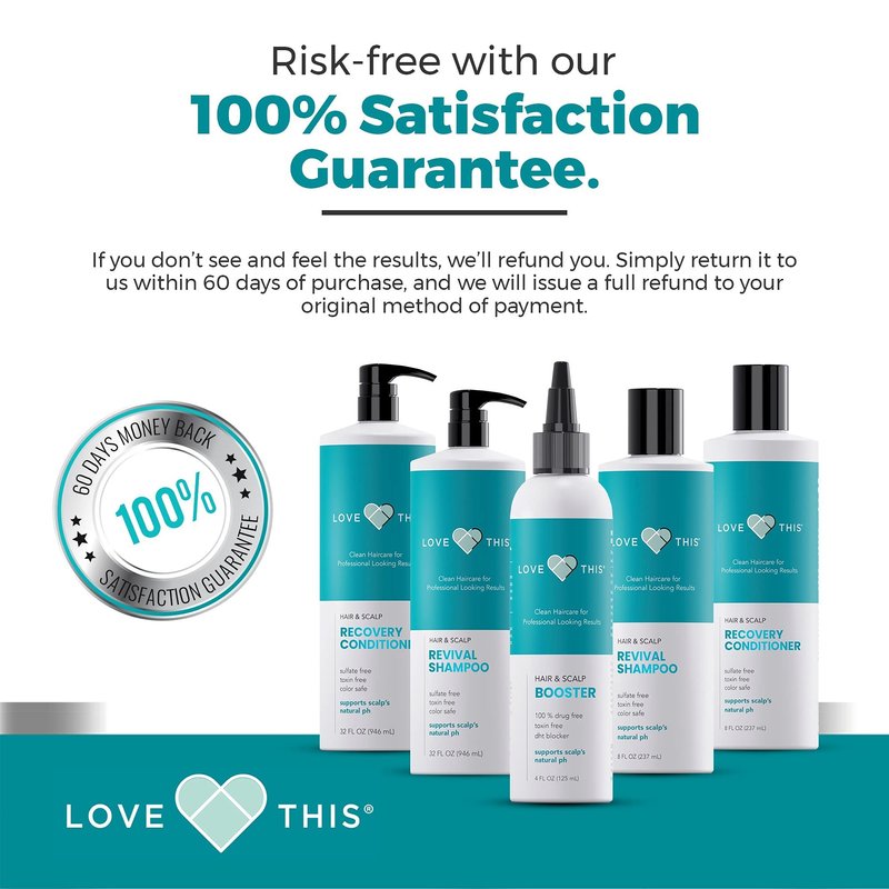 Love This - biotin shampoo and conditioner Bundle. Enjoy healthy hair from roots to ends! Supporting scalp's natural pH, Love This hair growth shampoo and conditioner for women and men 32 oz bundle cleans, deeply nourishes, and hydrates your hair and scalp for smooth and lustrous salon-quality results. This argan oil shampoo and conditioner repairing combo is formulated 100% natural Argan oil, making this the perfect hair care solution for all hair types. Promote Growth, Smooth, & Strengthen. Sulfate-free, our shampoo conditioner won't strip or thin hair or dull your natural shine. For optimal results use our best shampoo and conditioner this way, first drench hair and work shampoo from roots to tips, massaging the scalp. Rinse and follow up with Love This Recovery Conditioner. Leave in for at least two minutes, then rinse. Our amazing women & mens shampoo and conditioner is naturally scented with rosemary and peppermint oils to soothe and refresh your hair and scalp as you wash