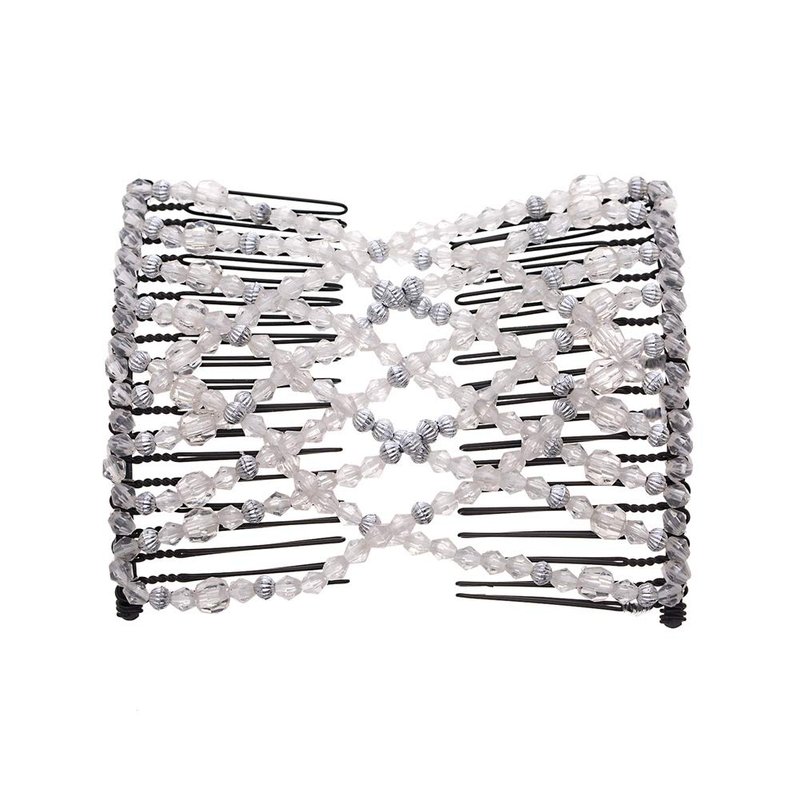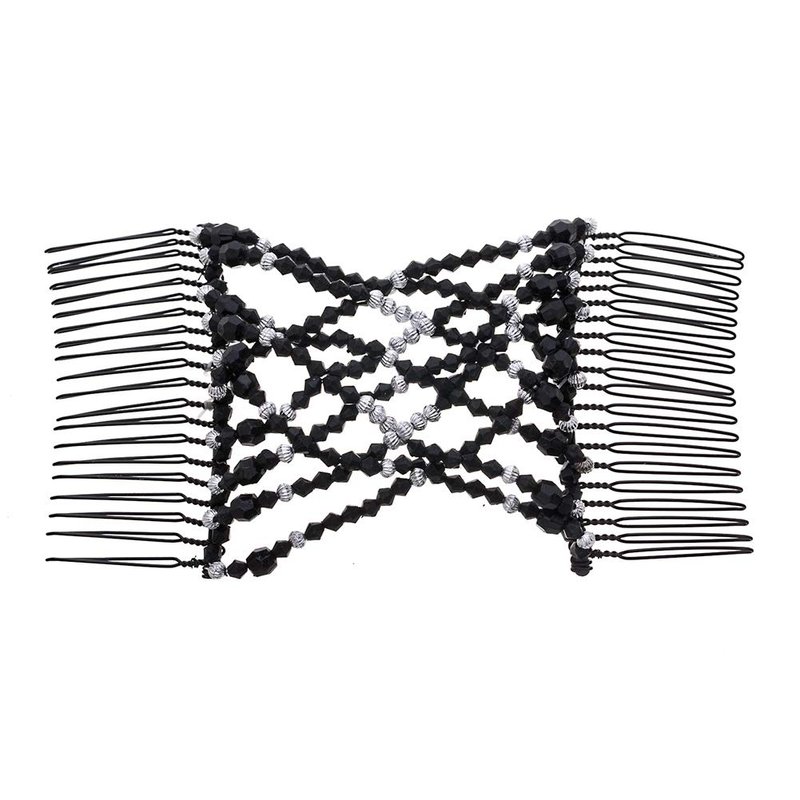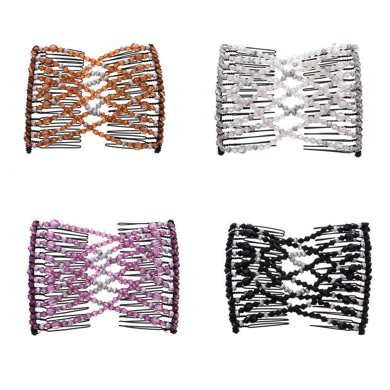 LOVEF 4Pcs Fashion Magic Beads Elasticity Double Hair Comb Clip Stretchy Hair Combs Clips
