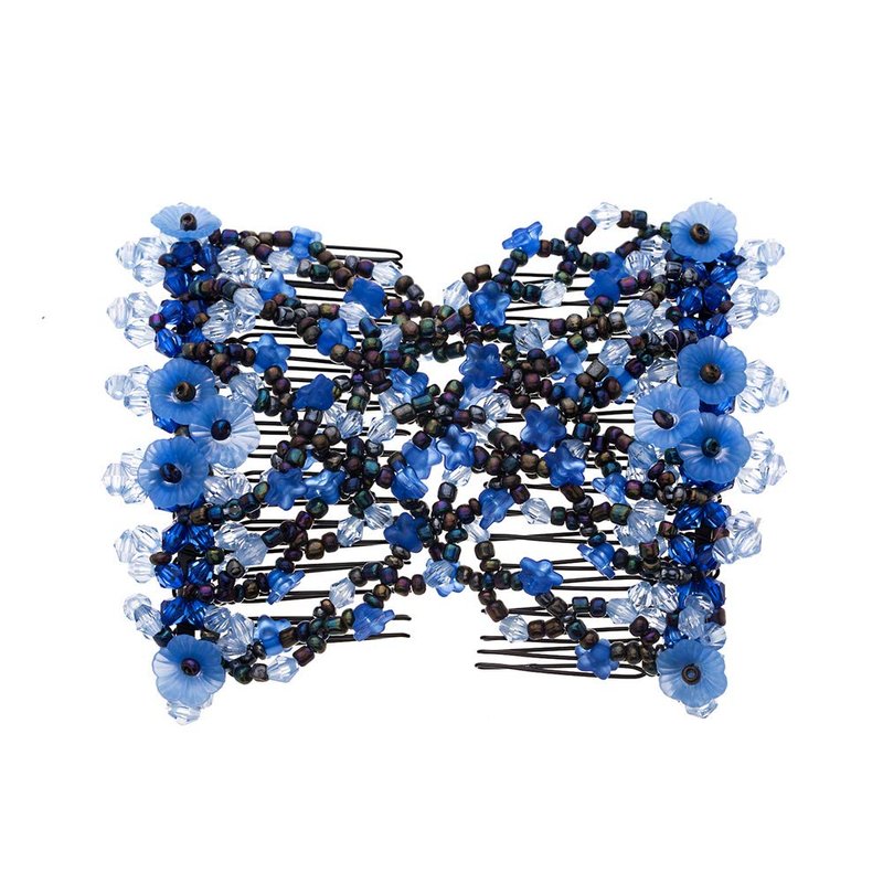 Lovef Flower Multifunction Easy Magic Hair Comb Stretchy Beaded Hair Comb in Small Beads Hairpin Plate Hair (Blue)