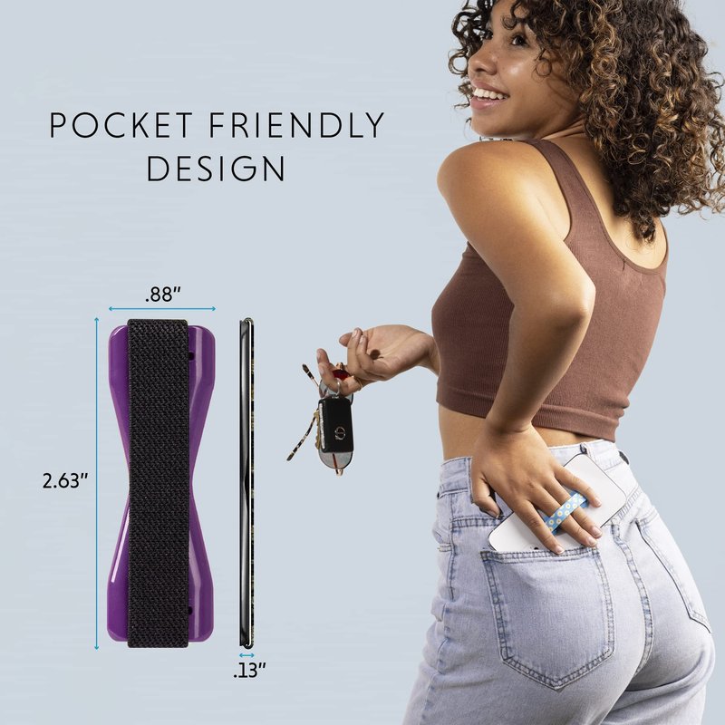 - THIN AND SLEEK: This pocket-friendly phone holder makes for easy texting, selfies, and photos with a one-handed or even no-handed grip. It has an ergonomic design and easily affixes to your phone with a removable, no-residue 3M adhesive. Compatible with all smartphones and tablets