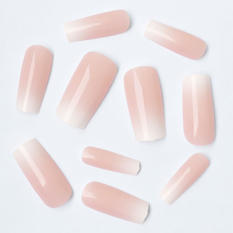 - Easy Application Ombre Fake Nails with Glue - Long press on square nails are per colored with nude color and gradient ombre effect, no dry time, no file or shape needed. Colored press on nail long square shaped fake fingernails are mess-free application in minutes. French ombre nails press ons make manicure easier than gel x nails and acrylic nails.