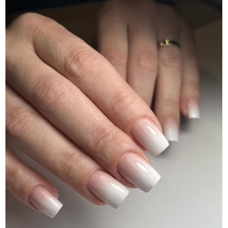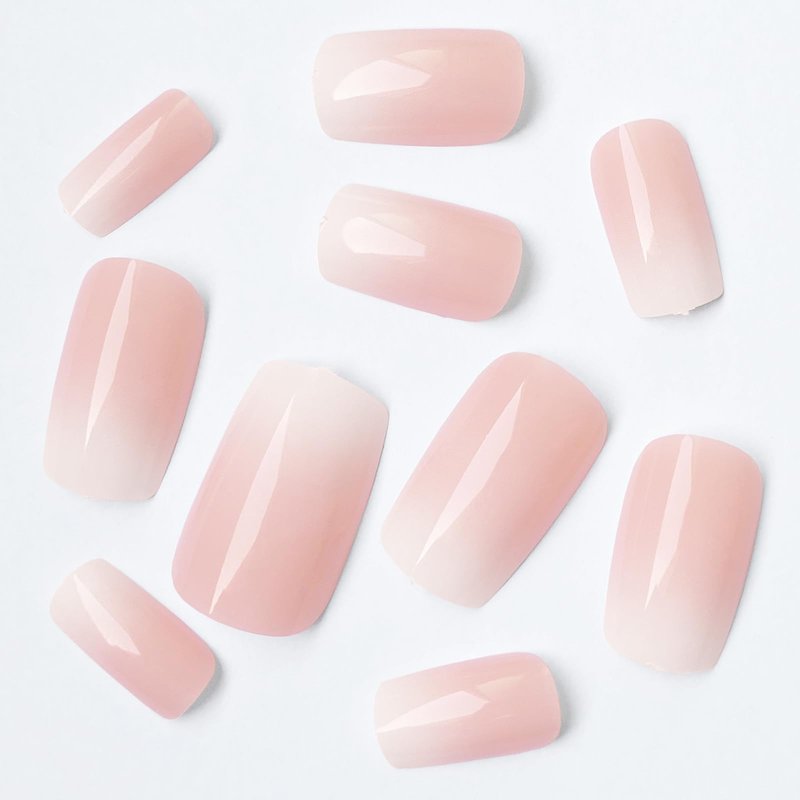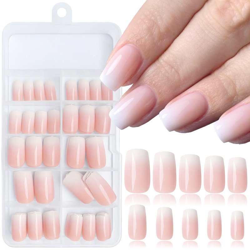- Easy Application Ombre Fake Nails with Glue - Medium press on square nails are per colored with nude color and gradient ombre effect, no dry time, no file or shape needed. Colored press on nail medium square shaped fake fingernails are mess-free application in minutes. French ombre nails press ons make manicure easier than gel x nails and acrylic nails.