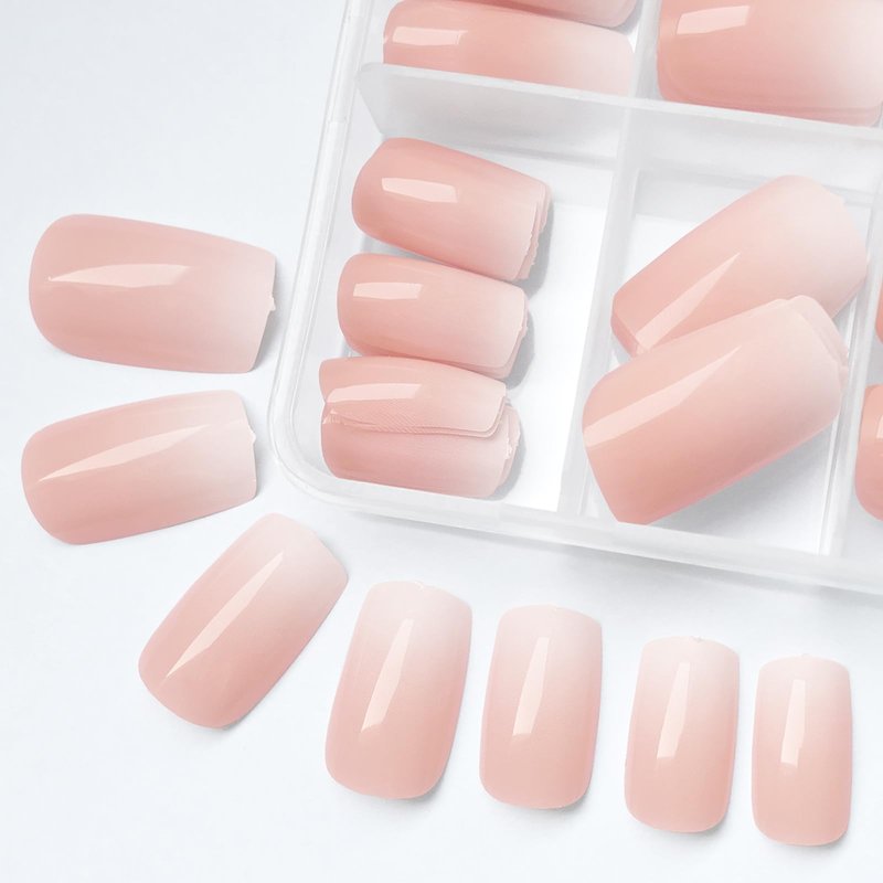 - Medium Square Shape Nude Fake Nail: Ombre press-on nails feature a trendy tapered square shape for an instant glam look. Meduim length false nails are perfect for daily life and work, gradient nude colors square nails press ons look natural on fingernails like real nails.