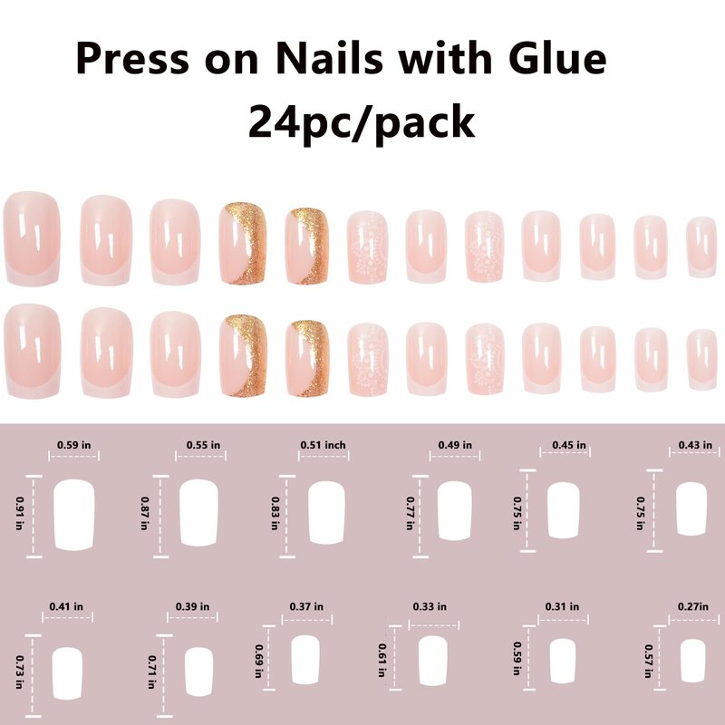 - French tips press on nails square fake nails made of high-quality acrylic material, acrylic press on nails are not easy to bend, crack or break. French fake nails with glue and sticky tabs can provide you a easy manicure experience without go to nail salon.