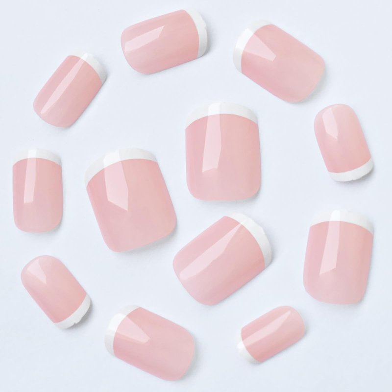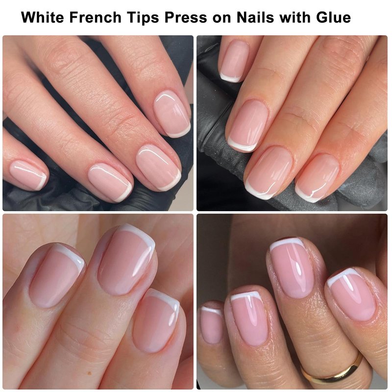 - Classic French Tip Press on Nails: Short press on nails french tips are pre-painted white french nail tip with sheer nude pink base mimics a natural in short length full cover square shape, nude press on nails french tips fake nails are salon-quality french manicure look for women and teen girls at home manicure design.