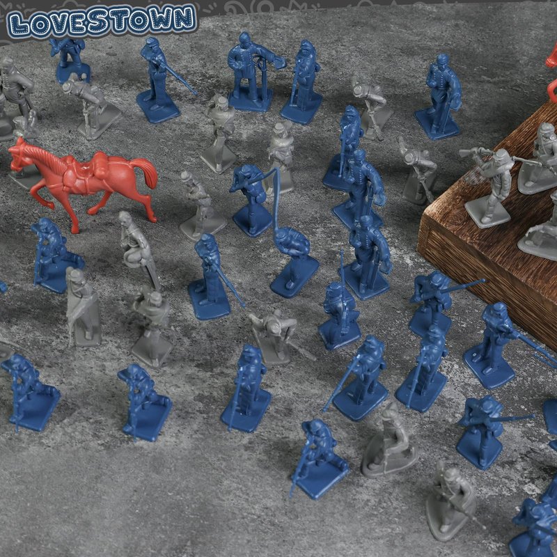 LovesTown 82PCS Civil War Solider Toys, 40 Blue and 40 Gray Uniform Action Figures Plastic Toy Soldier with Rideable Horses for Kids Birthday History Class