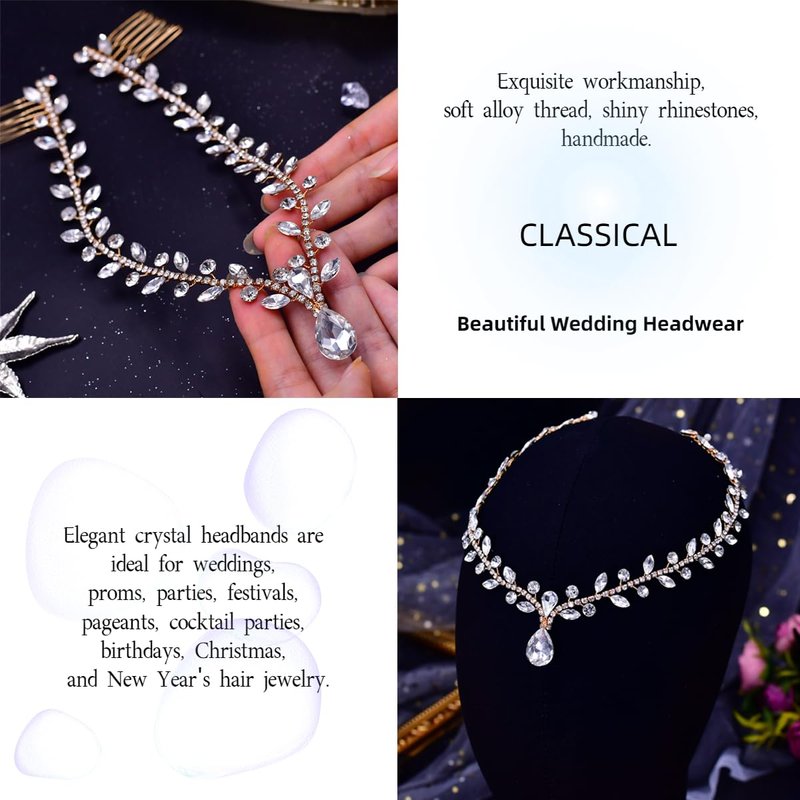 - Features: The design of the ladies wedding headband is simple and generous, the delicate shape of branches and leaves gives you a unique aesthetic feeling, making you more beautiful and charming, the head chain clip is designed with teardrops, elegant and shiny. Suitable for all hairstyle occasions and seasons.