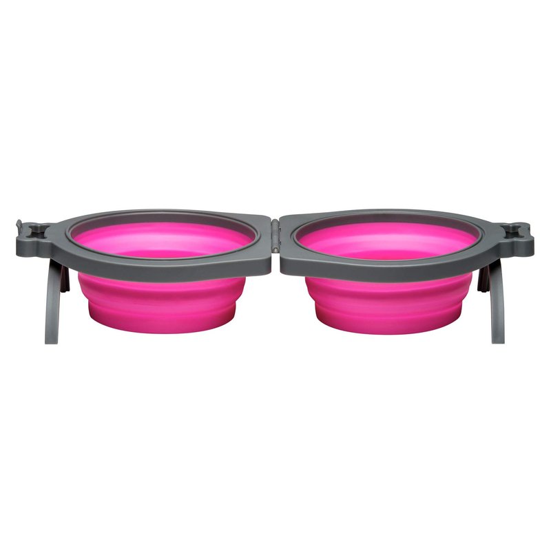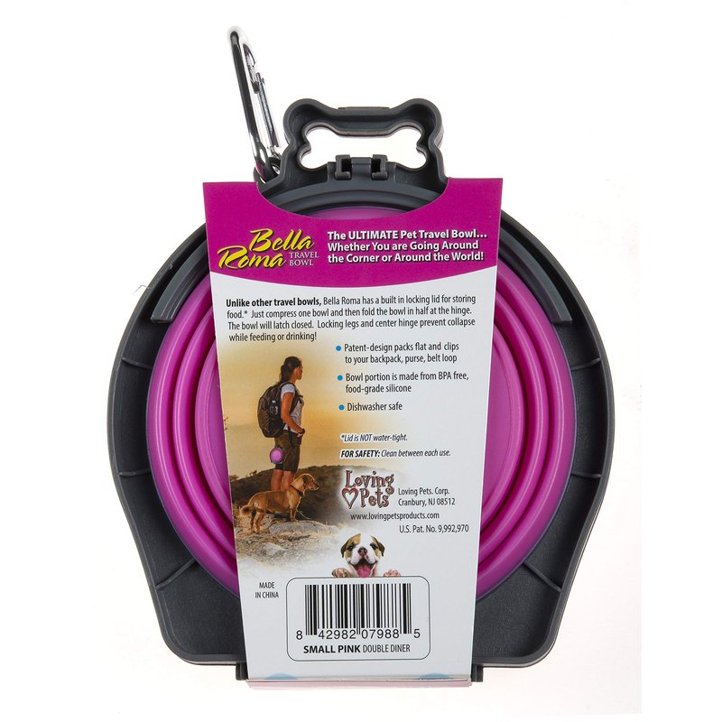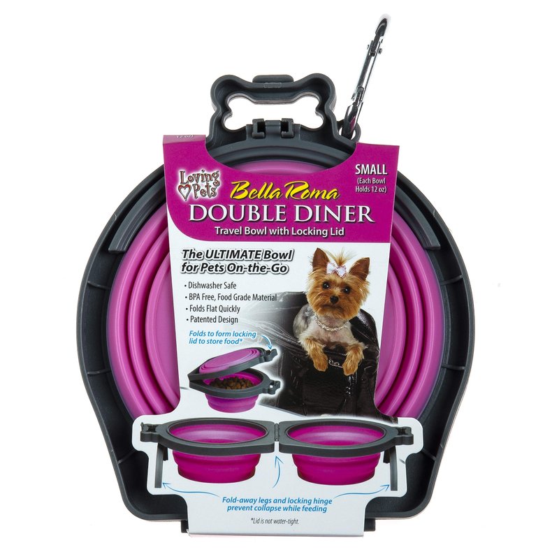 Loving Pets - Bella Roma Double Diner Portable Travel Dog Bowls Collapsible Combined Dog Food & Water Bowls (Pink, Small)