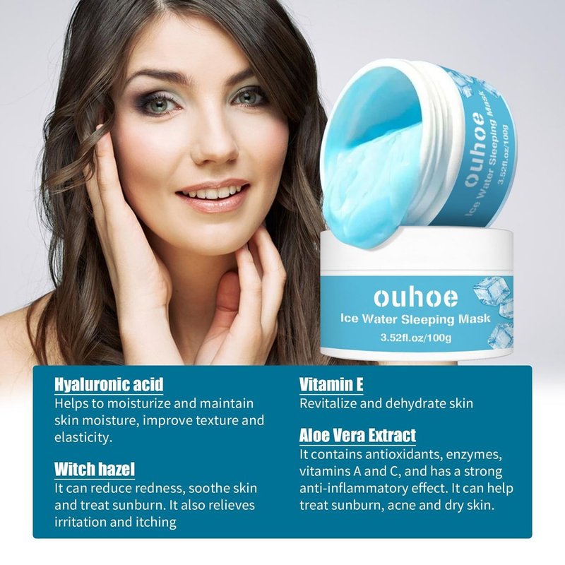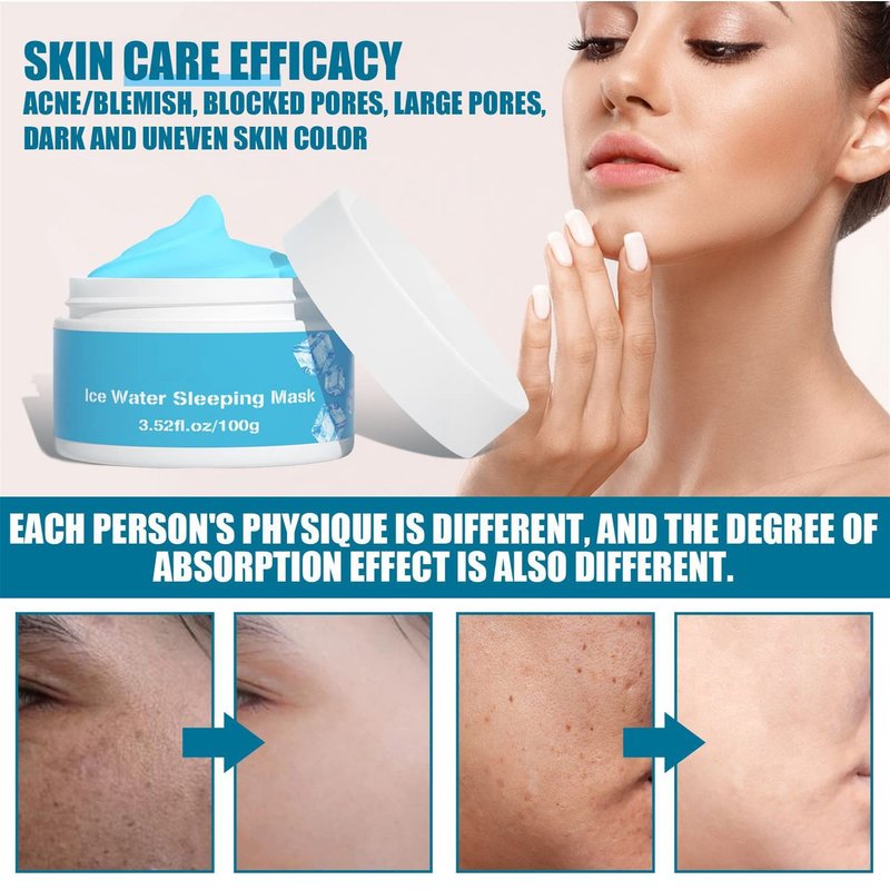 LOYOTICE 2PC Moisturizer Ice Water Sleeping Mask, Skin Beauty Hydra Moist Ice Water Sleeping Mask Cream, Hydrating Overnight Sleeping Mask, Wash-Free Sleeping Facial Mask(100g)