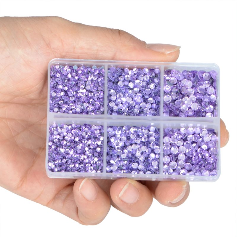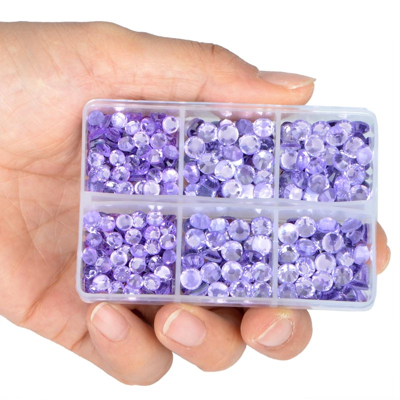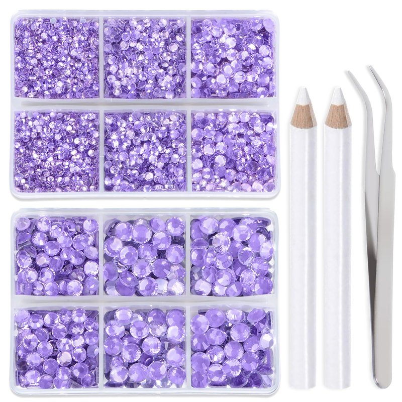 - Package includes: Violet purple 6400pcs flatback glass glittering hotfix rhinestones bulk in 5 sizes, with good quality tweezers and picker wax pencil.