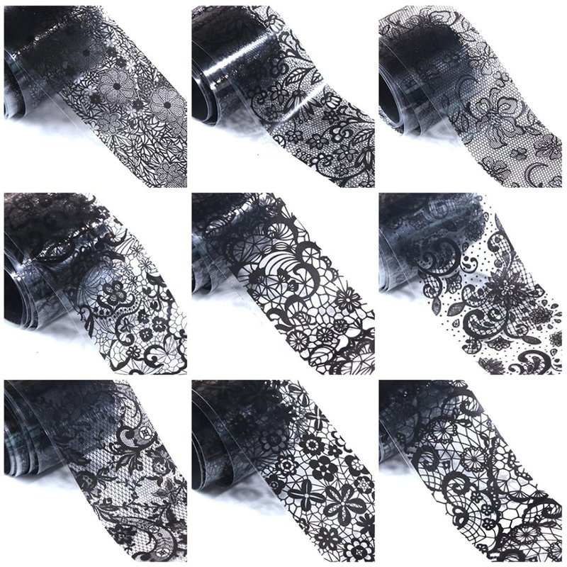 10 Rolls Black Lace Flower Nail Foil Transfer Stickers Nail Tattoos Manicure Design Adhesive Tip Decorations