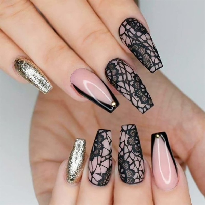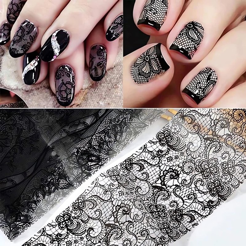LPOODDNU Lace Nail Foil Transfer Stickers Black Lace Nail Foils Decals Nail Art Supplies 10 Rolls Nail Adhesive Acrylic Nails Decorations DIY Nail Art Foil Designs for Women Manicure Tips Accessories