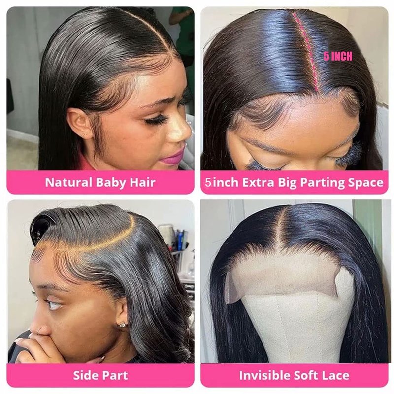 - ❤Hair Quality: Glueless 5x5 Lace Closure Wigs Human Hair with High Quality Swiss Lace, 180% Denisty, No tangles, No shedding, Can be Dyed, Permed, Curled, Reusable and Styled as Your Own Hair.