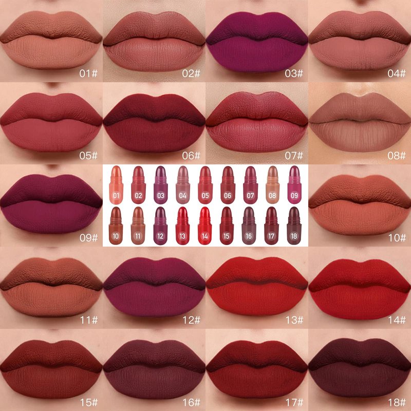 - 【18 Colors Matte Lipstick】Including a variety of nude, purple, brown, red, pink, orange, crimson and other 18 different matte colors. The colors were bright and pretty, one-off to meet your lip color needs.