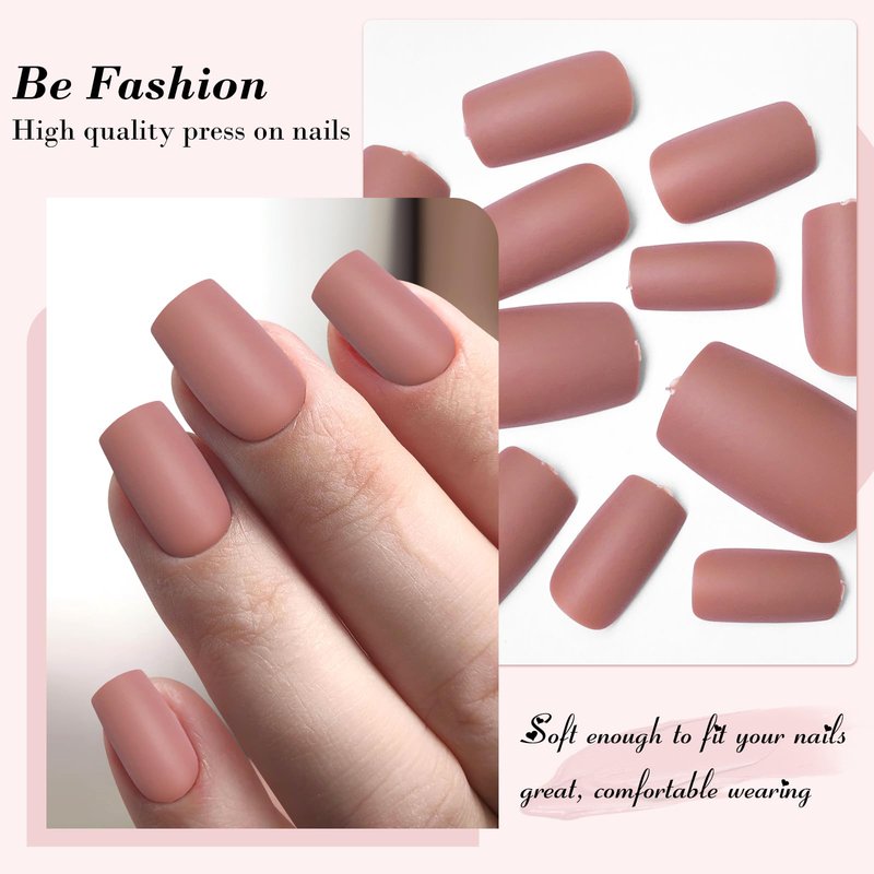 Matte square press-on nails are artificial nails designed for easy application and a polished appearance.Matte press on nails come pre-shaped in a short square style, featuring a flat tip with straight edges for a clean and classic look.Press-on nails are convenient alternatives to traditional manicures, requiring no professional salon services for application.Medium press on nails square typically come with adhesive tabs or glue, allowing for quick and hassle-free attachment to natural nails.Short square press-on nails offer versatility in styling, as they can be customized with various nail polishes, designs, or decorations to suit individual preferences. Medium length square press on nails brown provide a chic and polished appearance, making them suitable for both everyday wear and special occasions.False nails are perfect for individuals looking to achieve a well-groomed look without the commitment or maintenance of acrylic or gel nails. Square nails are also ideal for those who prefer a shorter nail length for practicality or personal preference. Black square press-on nails are artificial nails that offer a stylish and minimalist look. Brown press on nails nails come pre-shaped in a short square style, featuring a flat tip with straight edges for a clean and classic appearance.The matte finish adds a modern touch to the nails, providing a velvety texture and a soft, non-reflective surface. Unlike glossy finishes, matte nude nails have a subdued and understated elegance that complements a variety of styles and outfits.Press-on nails are convenient and easy to apply, making them accessible to anyone who wants to achieve a professional-looking manicure at home without the need for salon services.Square press-on nails typically come with adhesive tabs or glue for quick and hassle-free application.False nails provide a stylish and low-maintenance option for enhancing your nails' appearance without the need for frequent touch-ups. Whether for everyday wear or special occasions, these nails offer a versatile option for enhancing your overall appearance with minimal effort.