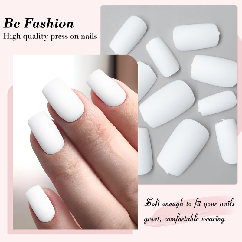 - Easy to Operate: White square press on nails medium are a super great neutral, artificial nails medium square press ons are works with tons of different skin tones.Y ou will definitely enjoy your DIY acrylic nails press on at home.If you want to pay less and need to take the square nails short nails off easily after an event/trip. Matte white square press on nails are a great option.
