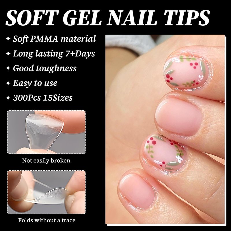 - 15 Sizes Short Oval Gel X Nails with No Trace: Our clear gel x nail kit includes 300 pcs short oval nail tips, 15 different sizes with 20 nails of each size, and 15 sizes coffin gel x nail tips can fit for wide/small nail beds or flat/curve nails. Easy to choose the suitable size for every finger.