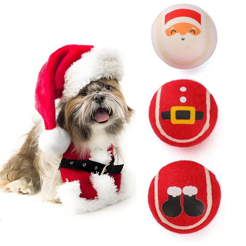 LUCKITTY 3 Packs Christmas Dog Tennis Balls Interactive Toy Puppy for Small Medium Dogs Training Playing- Santa Claus Patterns 2.5 Inch