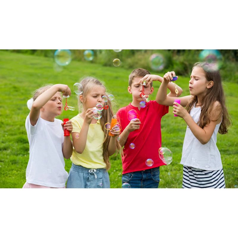 - Each bubble toy 4”tall and contains 0.2 oz. Perfect size for children 3 age+, prefilled with non-toxic smelless soap solution, Safe to kids’ skin and face. Child can enjoy the summer, various celebration.