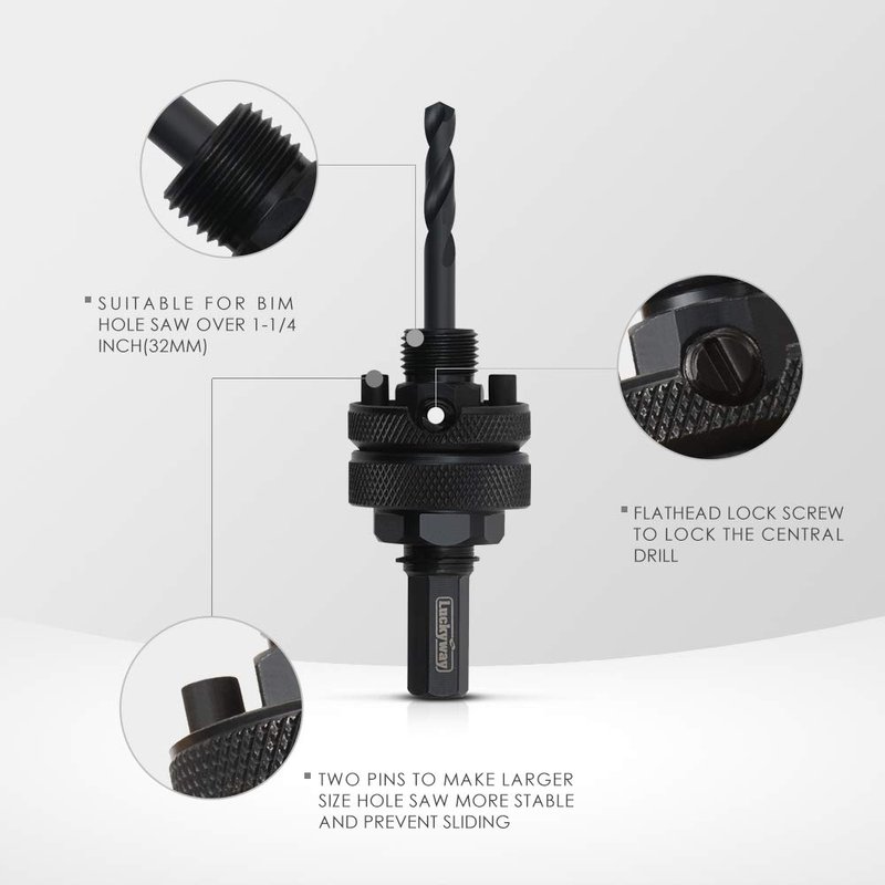 Luckyway 3-Piece Hole Saw Mandrel,Fit 3/4-Inch to 6-Inch Diameter,Including 7/16-Inch and 3/8 Inch Shank Hole Saw Arbor and 3-Piece 1/4 Inch HSS(M2) Central Drills