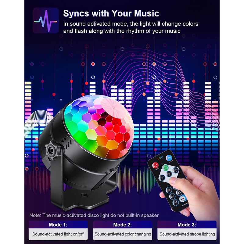 - Multi-functional sound activated party lights: 3 sound-activated modes + 7 lighting modes + Rotating speed control
