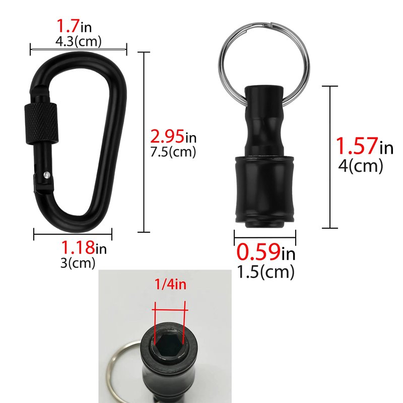 - 1/4 inch bit holder keychain prevents accidental dropping of the hex handle. It is easier to pick up the product and replace the drill bit you need with one hand, which helps to ensure the safety of high-altitude operations.