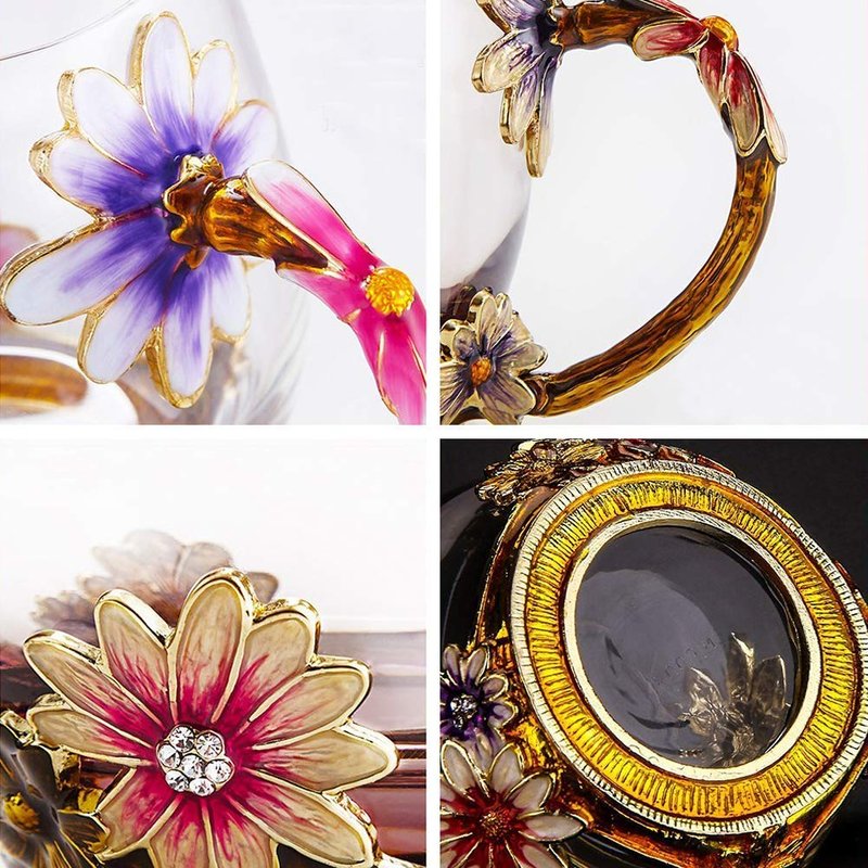 - The Flower Tea cup is made of high-quality Lead-Free eco-friendly sturdy glass material,glass cups are handmade by skillful professional craftspeople who pay attention to detail. Since all of our glass mugs are handmade, they’re not completely identical. So you can be sure that if you place an order, no one else in this world will have a glass coffee cup that will be exactly the same as yours