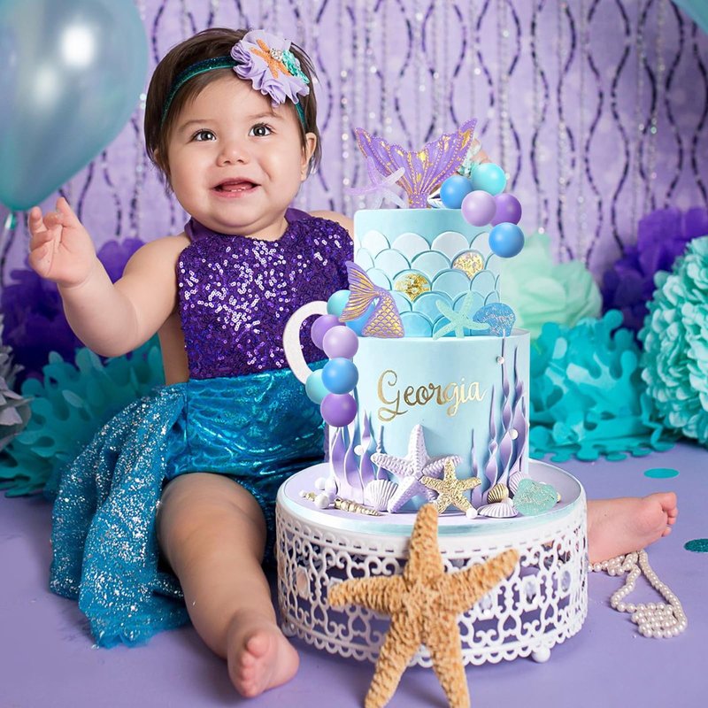 - 【Mermaid Tail Cake Decoration】26Pcs Decoration mermaid tail toppers include 2pcs mermaid tails,2pcs sea stars,2pcs seashells,5pcs dark purple balls,5pcs light purple balls,5pcs dark blue balls,5pcs blue balls,various styles can satisfy your multiple cake decoration needs.(Size as shown in the picture.)Our mermaid theme cake decoration will bring dreamy and beautiful embellishment to your party.