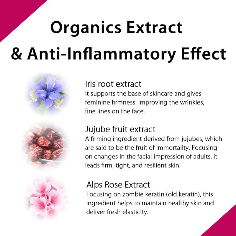 - A moisturizing and firming ingredient derived from iris root contains hydrating ingredients. It supports the base of skincare and gives feminine firmness and luster.