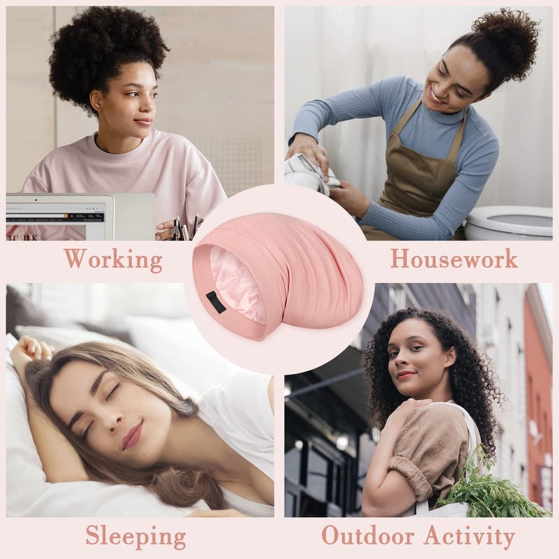 - SILK HAIR CAP FOR ALL HAIR STYLES AND VARIOUS OCCASIONS: Curly hair, braids, locs, wavy hair, long hair, almost every hair type can all be wrapped into our silk hair bonnet and enjoy its all-round protection. What's more, it's not just a hair wrap for sleeping, you can wear it anywhere anytime, go for a walk, go shopping outside, do sports or home chores, wear a CPAP. And multiple colors for you to choose to match your OOTD
