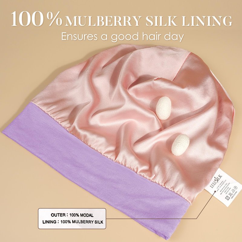 - LUXURIOUS SILK SLEEP CAP FOR PROTECTING YOUR HAIR: The premium silk LULUSILK presents contains 18 kinds of amino acids, together with its smooth surface, will nurture your hair, keep your hair from various damages, like split ends, tangles, frizz, and preserve your curls. Save time for enjoying life rather than wasting time on taming your wild hair. That's a quality silk lined sleep cap can provide
