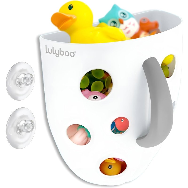 - ✅ Chic and Neutral Design: The Lulyboo baby bath toy holder white and grey color scheme complements any bathroom decor, adding a touch of style while enhances the aesthetics of your space