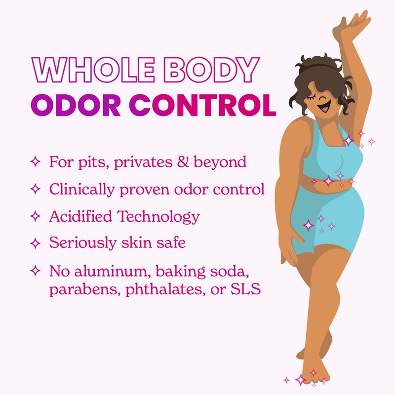 - EVERYTHING YOU NEED TO SMELL BETTER EVERYWHERE - Odor control for pits, privates and beyond—think feet, underboob, belly buttons, tummy folds, butt cracks, thigh creases or anywhere else you have odor but wish you didn’t.