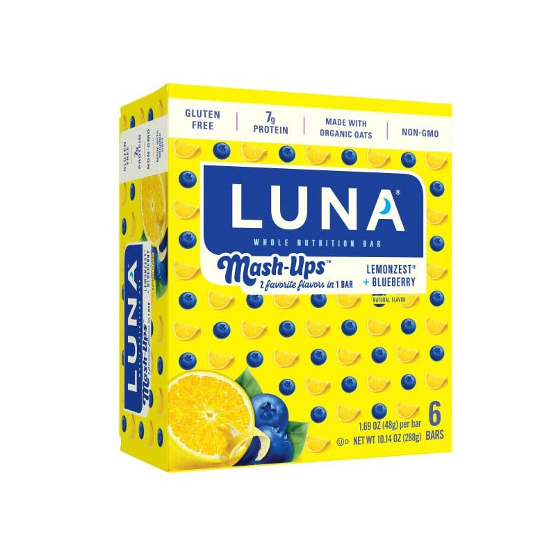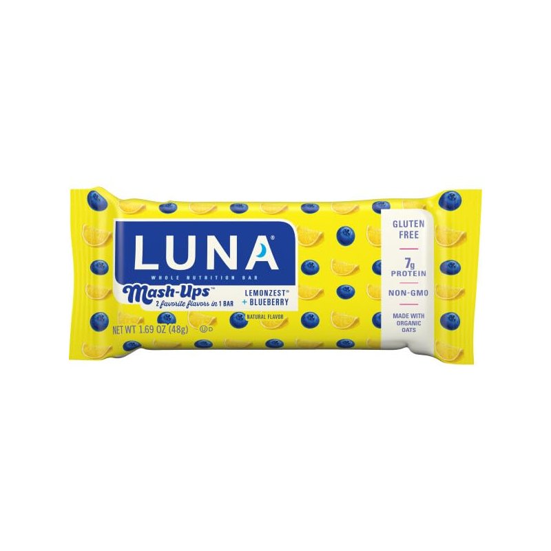 LUNA Mash-Ups - LemonZest + Blueberry Flavor - Gluten-Free - Non-GMO - 7-9g Protein - Made with Organic Oats - Low Glycemic - Whole Nutrition Snack Bars - 1.69 oz. (6 Count)